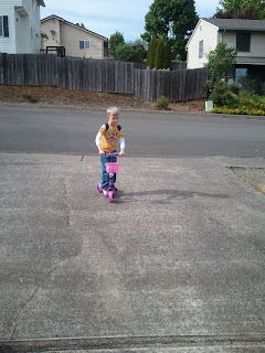 Fun! I finally got Diego out on his scooter and he had such a great time! I love the pic of Mike on J's bike, its hilarious! Eddie did the exact same thing the other day on Diego's little bike!