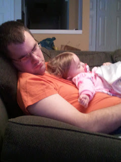 After we dropped off Jaycoby, we headed to Mary & Jeff's house for dinner. We warned them that she wasn't feeling too great, but we weren't expecting her to get sick at the dinner table. She gagged on some of her dinner and then we got to see the rest of it all over again. Gross! Zach fled from the room because, naturally, he has an aversion to vomit. Can't say I blame the guy. Mary helped me get everything cleaned up, we visited a few minutes longer while Ella tried her hardest to be happy, but then we had to go so she could rest. She fell asleep in the car around 9 p.m. and slept the next morning until 9:30 a.m. Whoa!